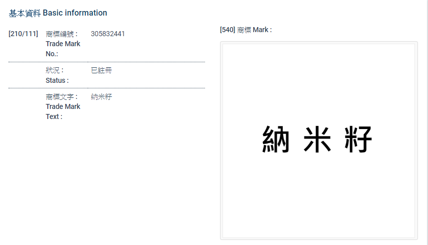 商標編號: 305832441